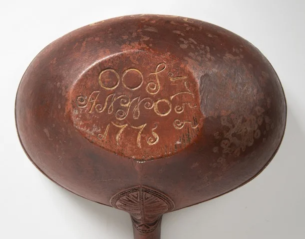 Cf. Steven S. Powers, North American Burl Treen, p. 165: "...dog effigies on ladles are quite uncommon."